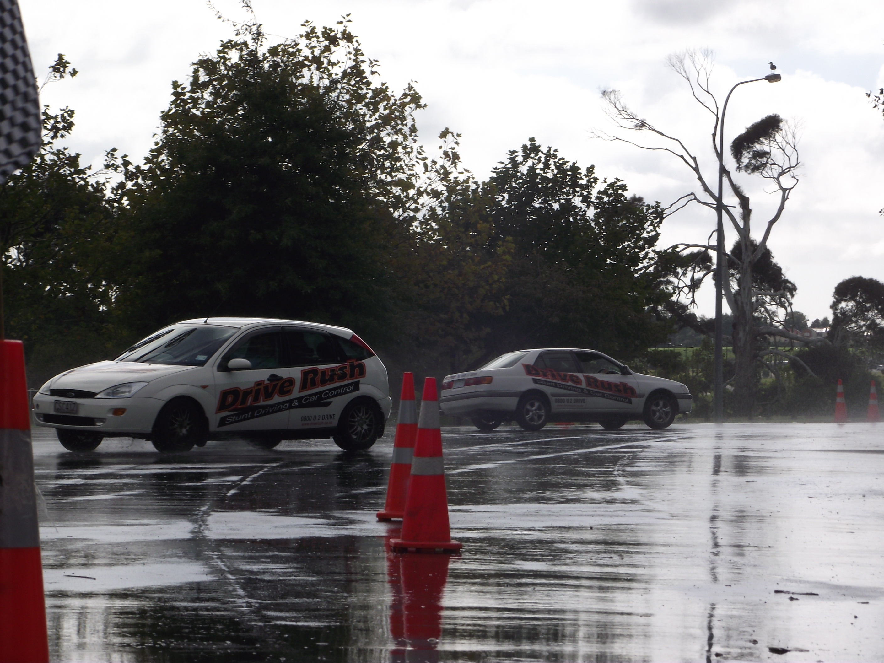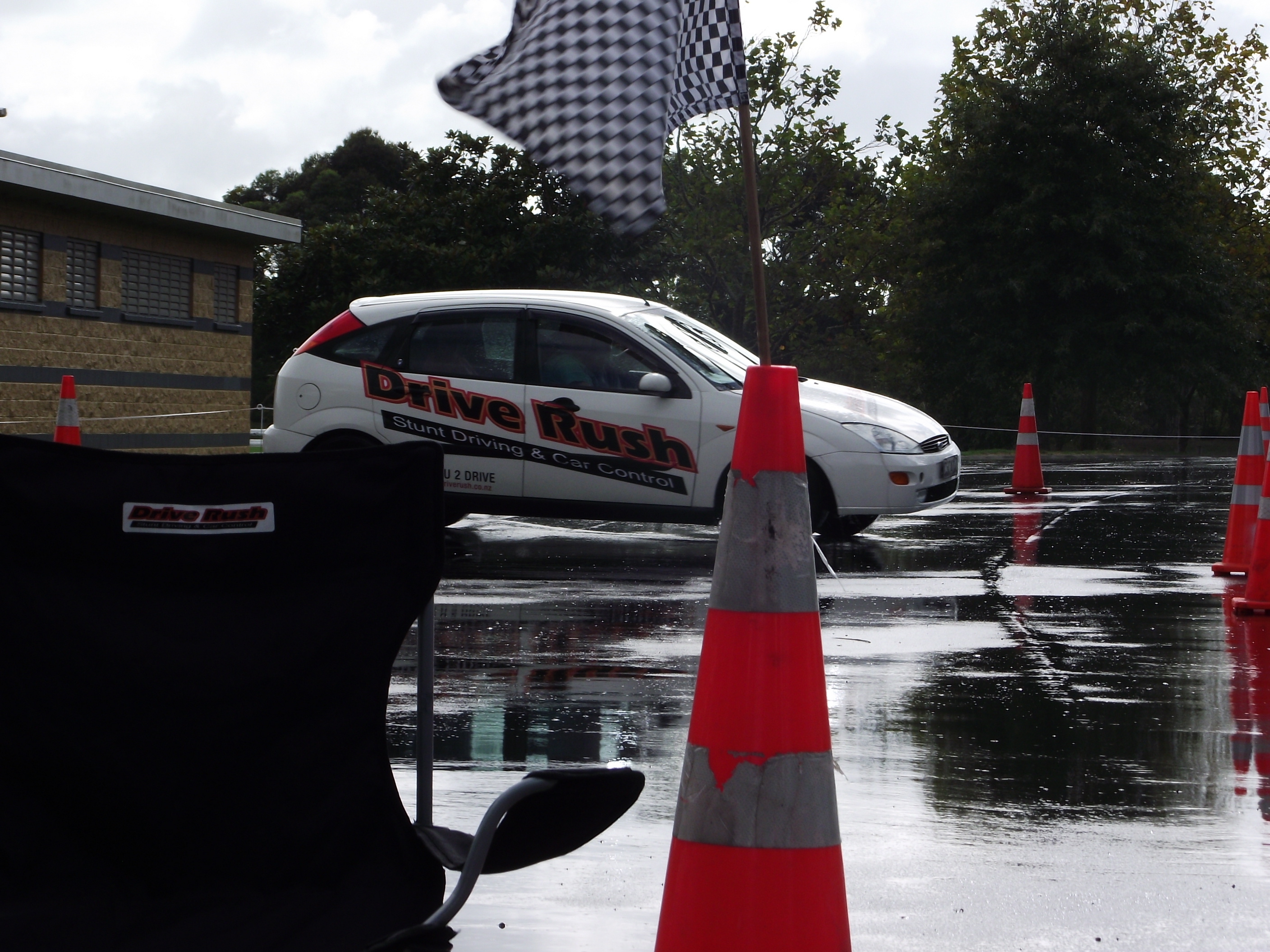 Sunday the 13th of March I was lucky enough to take part in the Drive Rush Stunt Driving School based in the car park at North Harbour Stadium thanks to a voucher given to me from my lovely wife. I was nervous before going and I needn’t have been. The instructors were very friendly and made it an extremely fun couple of hours for all those attending, including the spectators. Drive Rush is run by Peter Bell and for those of you who don’t know he has a wealth of experience in stunt co-ordination and driving that has seen his name in the credits of over 200 films around the world in his thirty year career. He is also the Guinness World record holder for the tightest parallel park; you may have seen him on TV smashing this record.