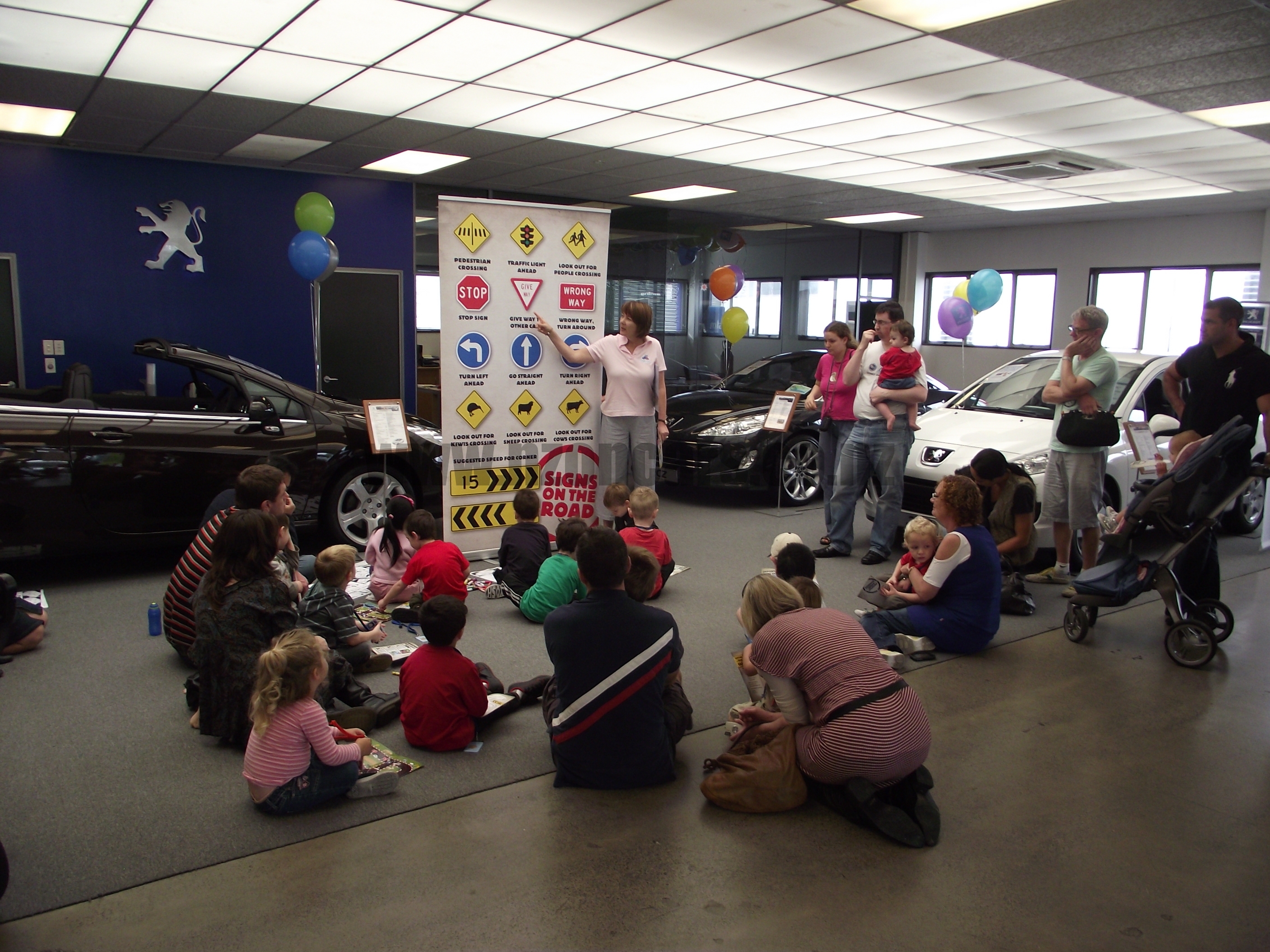 The kids seem to thoroughly enjoy the experience, especially the first session in the little Peugeot 107 pedal car where they are let loose on the ‘road’.  There were cars everywhere, some even opted to take short cuts across the ‘grass’ and around the outside of the layout to avoid the gridlock that emulated most of the time.  There was a small bit of contact between the cars and some did lose their side mirrors!  After a few minutes of a scene straight off the Southern Motorway they were all sat down and given a talk about road signs and what they mean, what to do at a pedestrian crossing and so on.  The children are then split into two groups with the one group getting back in the cars and the other having morning tea and some time for colouring in.  This time on the road the kiddies were a little more composed going a tad slower, stopping at the pedestrian crossing and the traffic lights.  Another chat then they were all presented with a certificate, a backpack and toy Peugeot 3008 before one last free for all.