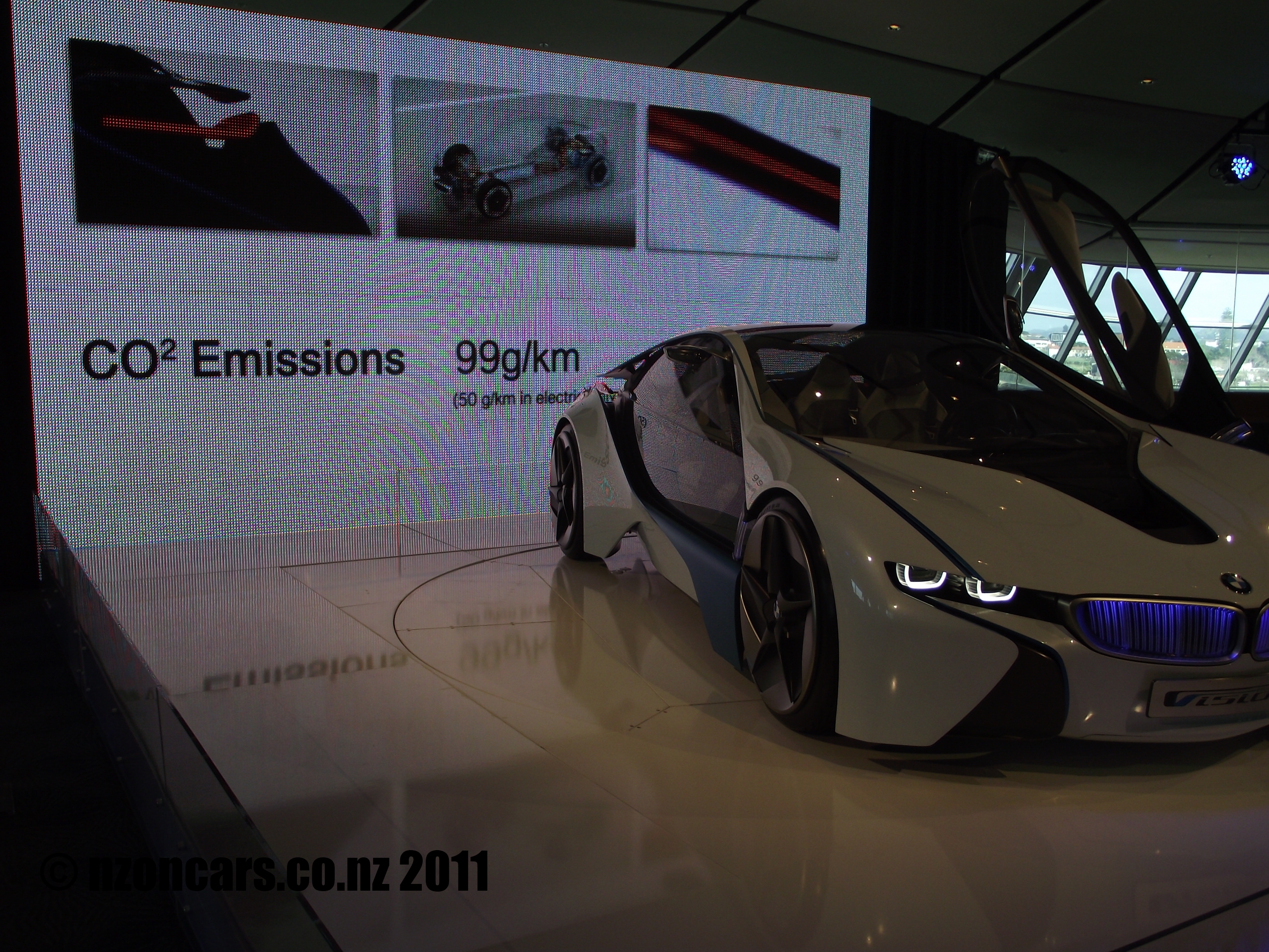 BMW in Munich designed and hand built during 2008/09 a one off concept car called the Vision EfficientDynamics, Vision ED for short, and it was on display at the Auckland Museum July 15th to 17th after wooing the media at the Melbourne Motor Show. This car is definitely a vision of what we will all be driving in the future. Once just the dream creations of sci-fi movie productions is now a mere few years away with BMW saying the Vision ED will be going into production in 2013 and will be called the i8. The production model will be 99 precent identical to this stunning show car.