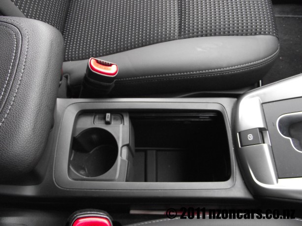Inside the cabin is well appointed, comfortable for all, and has lots of nice little storage compartments to lose things in. there are three little covered compartments in the rear, pockets everywhere and a clever storage bin under the cup holders in the centre console. Press the switch like button, slide the cup holders back and you have a space big enough to hide things such as a GPS, iPod, food, drinks, wallet, pet ferret or wet wipes for the littlies. Room has been made for this storage space due to the park brake no longer being the cumbersome, space taking hand brake leaver, it is now a cleaver little switch on the console which can take a bit of getting used to and sometimes might need a second or third attempt to get to work. But I do like this quirky space saving idea. There are another two cup holders in the centre fold out arm rest in the middle row of seats but in the third row I did find it a bit odd that there was only one cup holder, surely it would have made sense to put two back here?