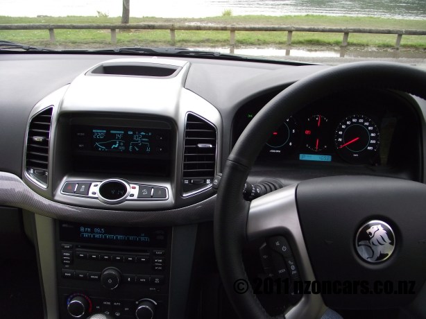 Whoops, I appear to have gone a wee bit off track there. Sorry, but drivers like that do tend to get me riled up. Speaking of off track, it seems a shame that a car such as the Captiva has a great little function suited for off roading, Descent Control System, in a vehicle not made to go off road any further than a grass verge. It’s a pity because with a little more ground clearance, chunky tires and the front and rear end under carriage angled up slightly this could be quite a good off roader with the comfort of a luxury sedan. There are a fair few other electronic gadgets as standard equipment like EBD, ESC, BA, TC, Hill Start Assist, Self Levelling Suspension which lifts the rear end when the car is loaded and Active Rollover Protection, this applies the brakes to each wheel as needed when excessive body roll is detected during cornering to slow the vehicle in order to keep the Captiva from going wheels up. All that, along with more air bags than a mother-in-law convention, help to give the Captiva 7 a four safety rating.