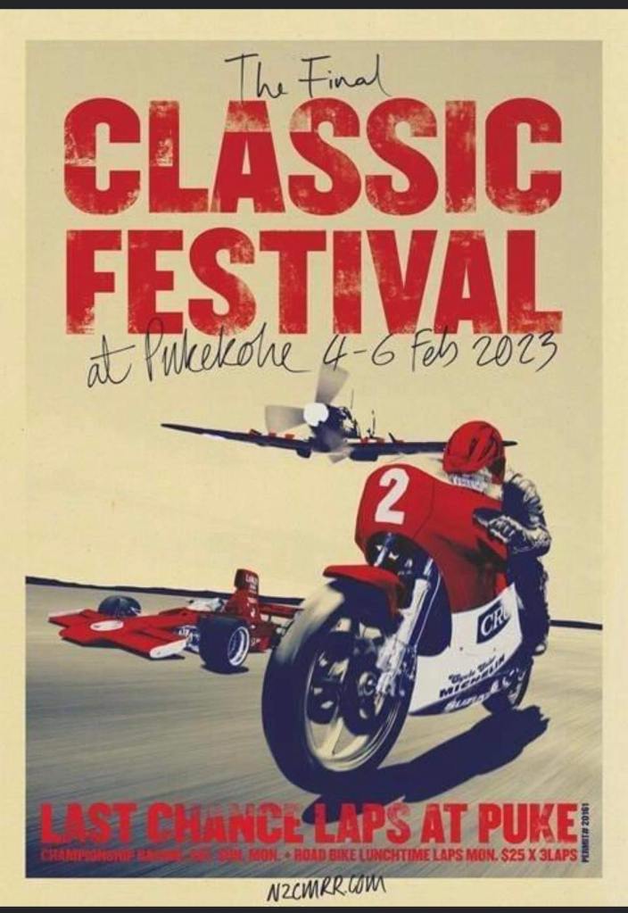 Along comes 2023. The big annual event rolls around after not being run the last couple of years due to COVID restrictions. The 43rd Classic Motorcycle Festival at the historic Pukekohe Park Raceway south of Auckland on the weekend of the 4th to the 6th of February (Monday being the 6th February, a national holiday). This was set to be an extremely emotional event due to the fact that this historic circuit is being closed permanently from April 2023. It is to be dismantled to make way for a horse stud by the owners, a trotting club, after 60 years of operation hosting many classic event’s including Formula 1 in the early days. This weekend the track and facilities looked immaculate, much to the credit of the manager, Gary, and his team, considering the entire pit area, and large parts of the track were under water the week before after a destructive rain storm flooded parts of the city.