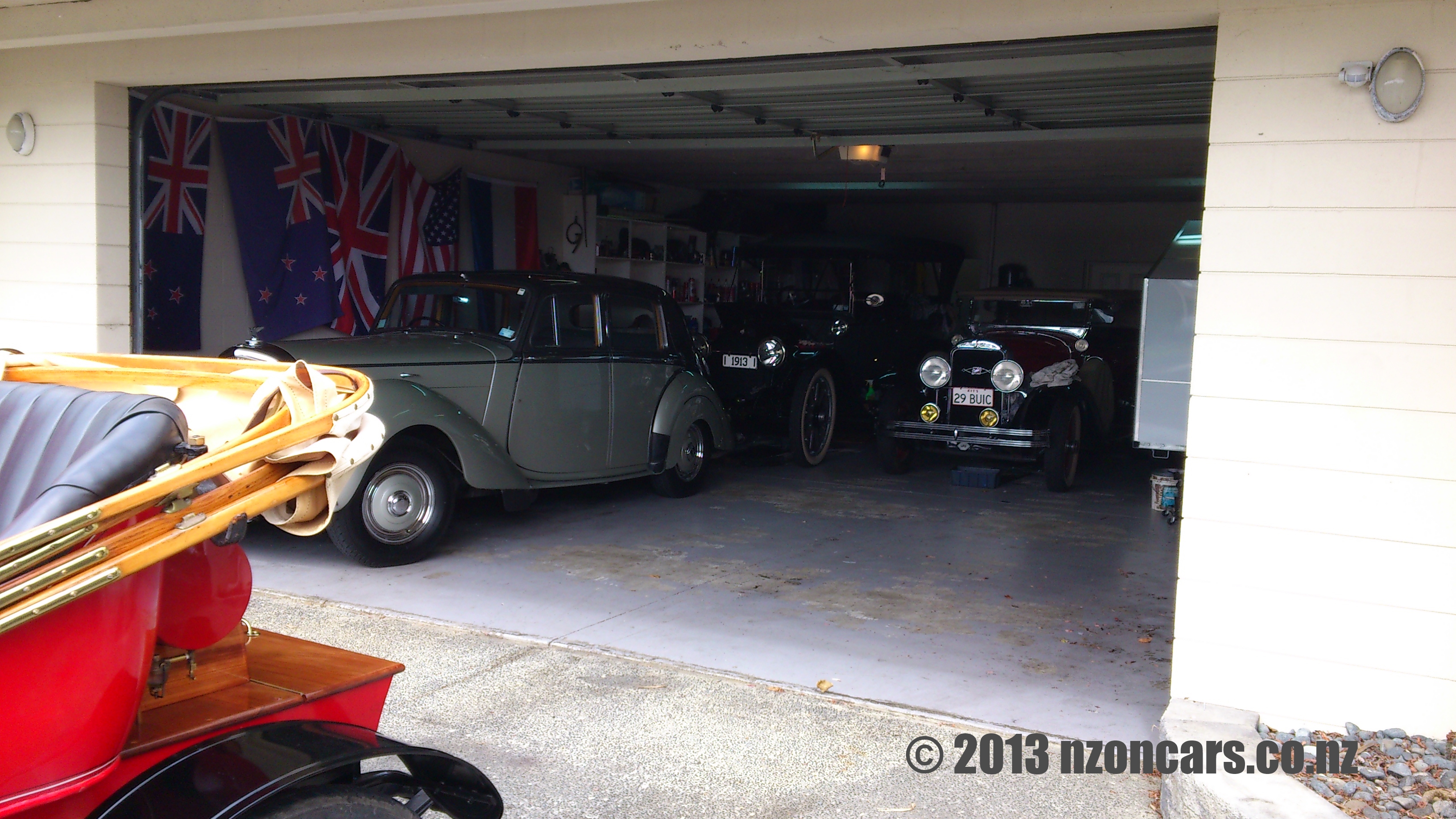 I just couldn’t help myself, I had to follow him and ask to snap some photos of this amazing machine. I do apologize to this lovely gentleman if I had him a tad worried as I followed him through the clean and tidy streets of Henderson Heights. When he eventually pulled over and I asked to take some photos this ancient piece of motoring history I was totally stunned by the condition of it, it was faultless from crank handle to folded hood, and of course fully registered and warranted. As I was snapping away on my phone the gentleman, Kit was his name, mentioned that he had a couple more cars in his garage around the corner. Imagine my excitement and surprise when I pulled my car around the bend and saw this…